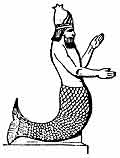 Cerkev je prevzela nošenje posebnih kultnih pokrival iz poganskih kultov. Na primer, tiara in mitra babilonskega boga rib Dagona se uporabljata za papeže, kardinale in škofe. Levo tiara boga rib Dagona in papež Inocent III. s tiaro. Levo Dagon s svojo mitro, zraven papež Pavel VI. s staro mitro boga rib. |